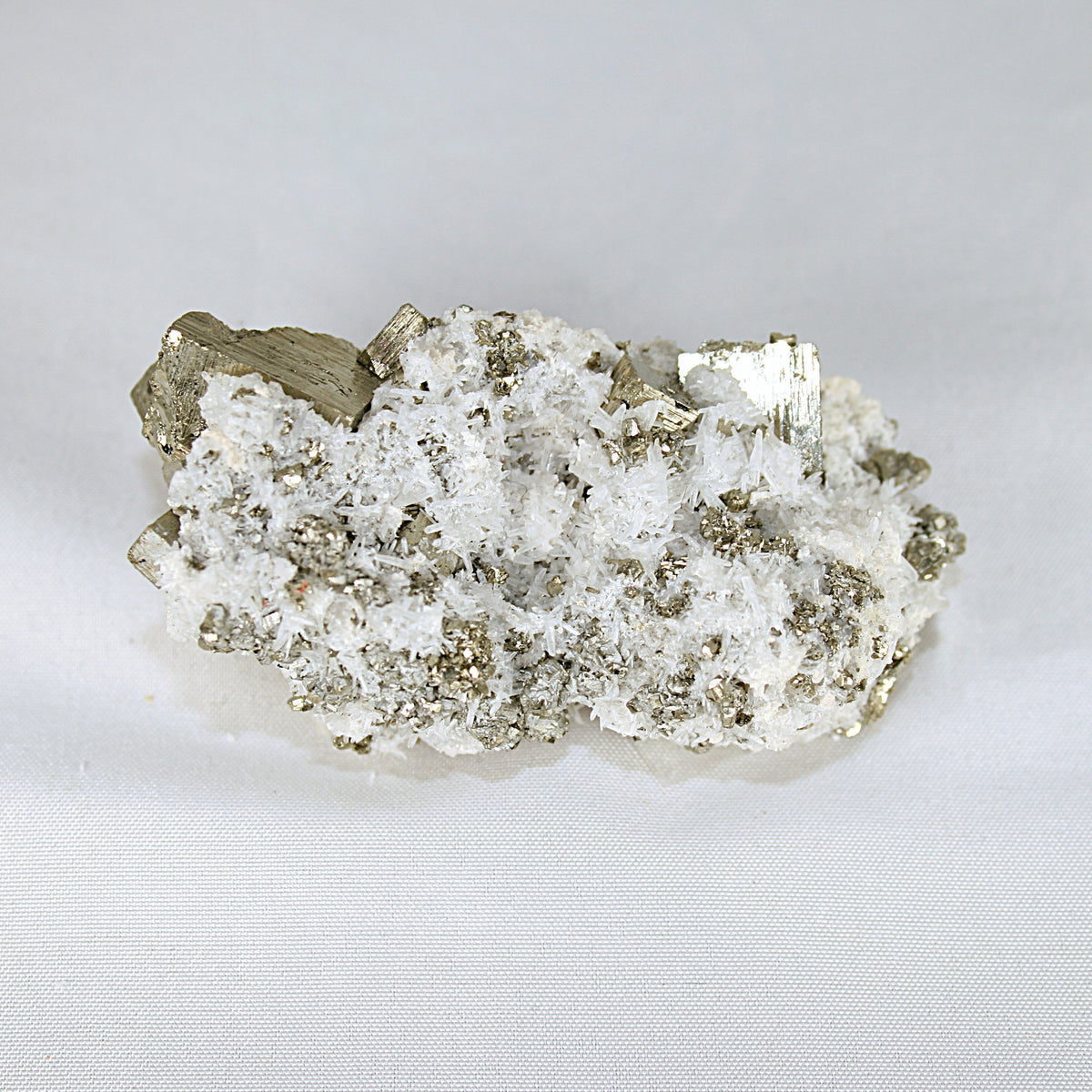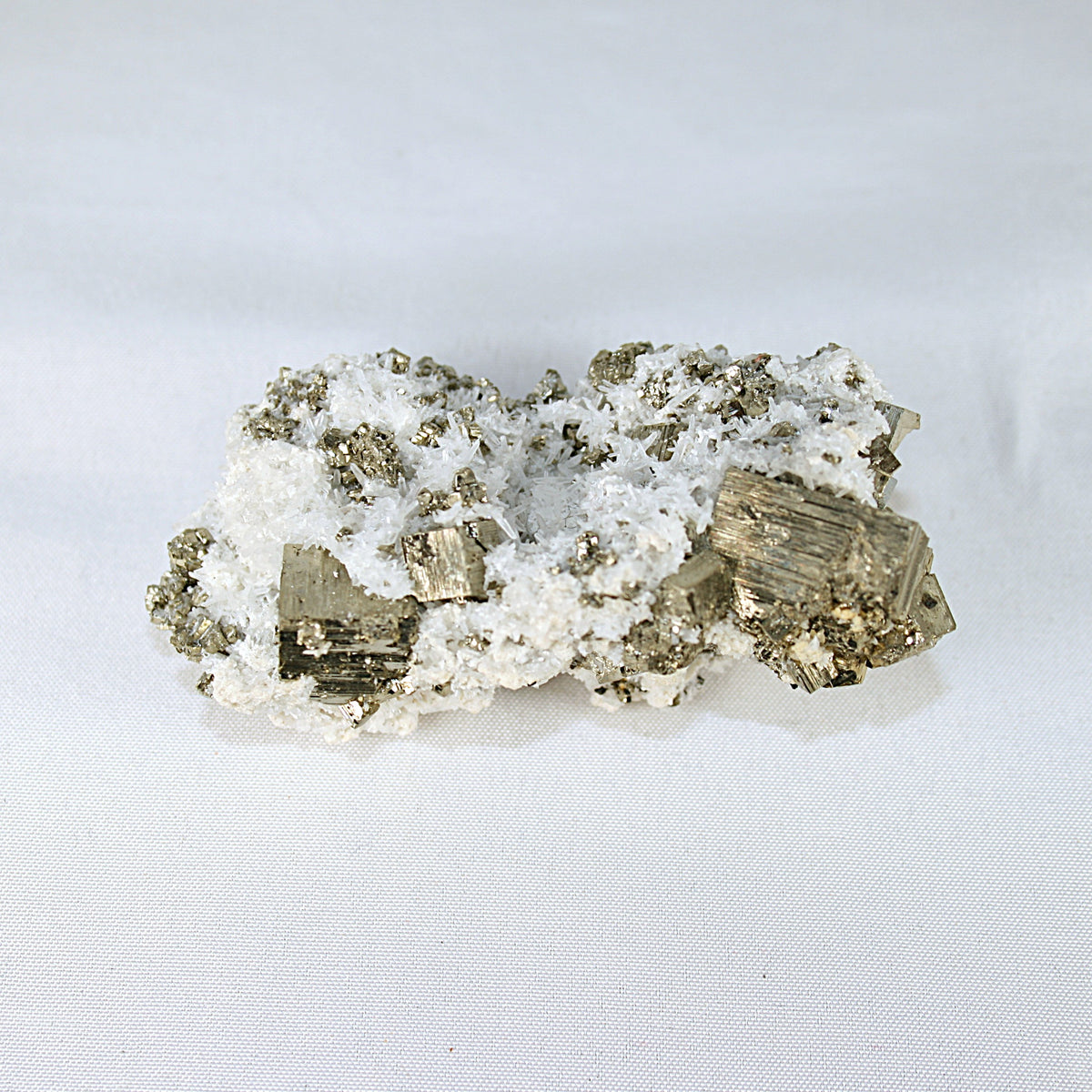 This Pyrite and Snow Quartz specimen combines the power of abundance, prosperity, and clarity in one dynamic piece. Pyrite, known for attracting wealth and success, enhances motivation, willpower, and confidence, helping you move forward in career, investment, and personal goals. It removes doubts and fears, empowering you to take decisive action and complete tasks with determination. In crystal traditions, Snow Quartz is often associated with clarity, calmness, and gentle energy. It is believed to promote balance, patience, and thoughtful decision-making, making it a popular stone for meditation and spiritual practices.
