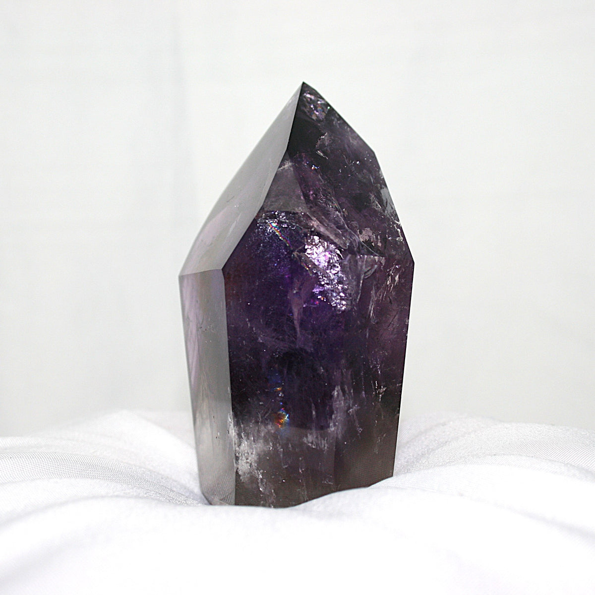 This Phantom Amethyst Tower, sourced from Brazil, is a powerful crystal for healing, clarity, and transformation. Amethyst is revered for its high-frequency energy, which promotes peace, balance, and emotional well-being. It soothes the mind, body, and spirit, helping to ease anxiety, encourage restful sleep, and calm turbulent emotions. The polished finish enhances its gentle energy, while the natural point shape allows for focused energy direction, making it ideal for manifestation and intention-setting.