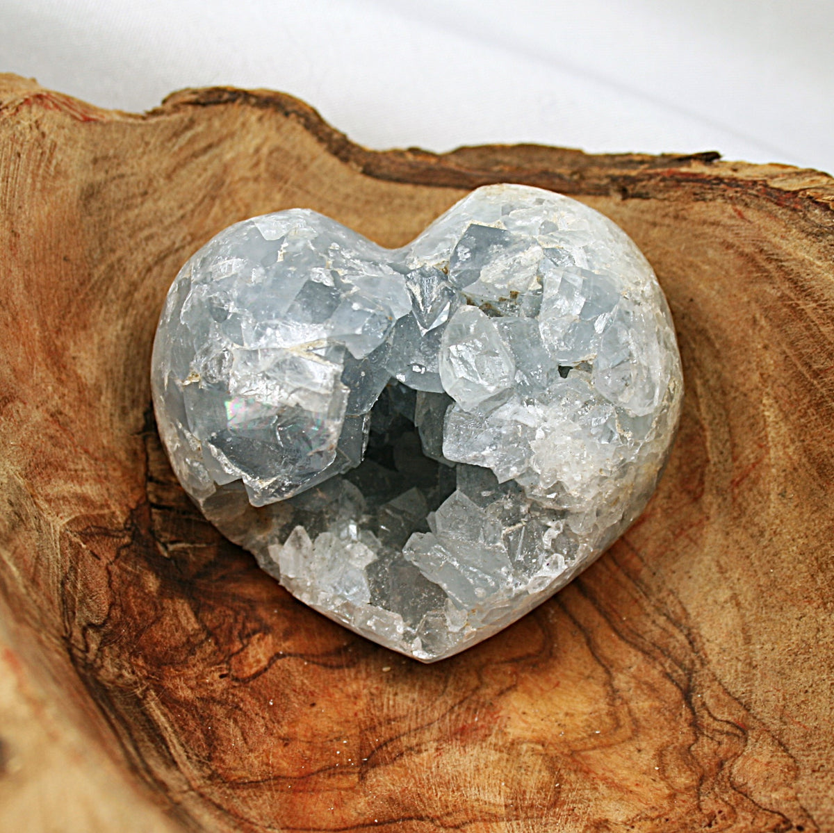 Celestite is a wonderful tool to help with chakra cleansing and grounding. The divine energy starts with the Throat Chakra, freeing up any blockages so that you have room to thrive with your communication skills. It then travels to your Third Eye Chakra and moves up to the Crown Chakra expanding your vision.